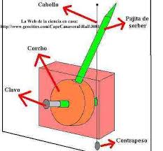 En la base de la placa de la madera se fijará un carrete de tal forma que pueda girar libremente. El cabello se dispone entre el clavo superior y el carrete de manera que dé unas 2 vueltas en torno a este y de su extremo inferior cuelgue un peso que puede ser una bolita de plastilina.